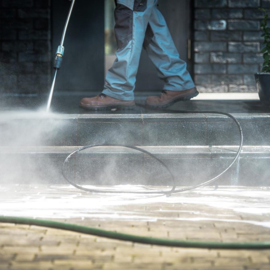 We employ soft washing or pressure washing methods. The choice depends on the surface material to clean effectively while avoiding damage.
